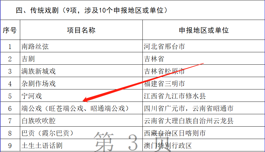 2020年12月18日,文化和旅游部关于第五批国家级非物质文化遗产代表性项目名录推荐项目名单予以公示,旺苍端公戏正式被国家文旅部公示为国家级非遗项目。据悉,第五批国家级非物质文化遗产代表性项目公示推荐项目337项,其中,新列入198项,扩展139项。。四川上榜了14个项目,广元市只是上了这一个项目!来自四川省广元市的旺苍端公戏为传统戏剧类项目进行申报,国家只是通过了9个戏剧类项目,旺苍端公戏为戏剧类的第6号入选。