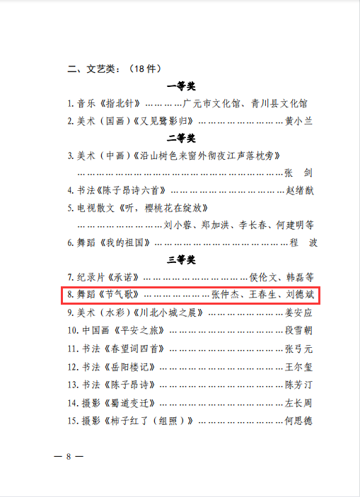日前,广元市2020年度优秀精神文化产品名单公布,旺苍县文化馆馆长张仲杰原创作品《节气歌》上榜。