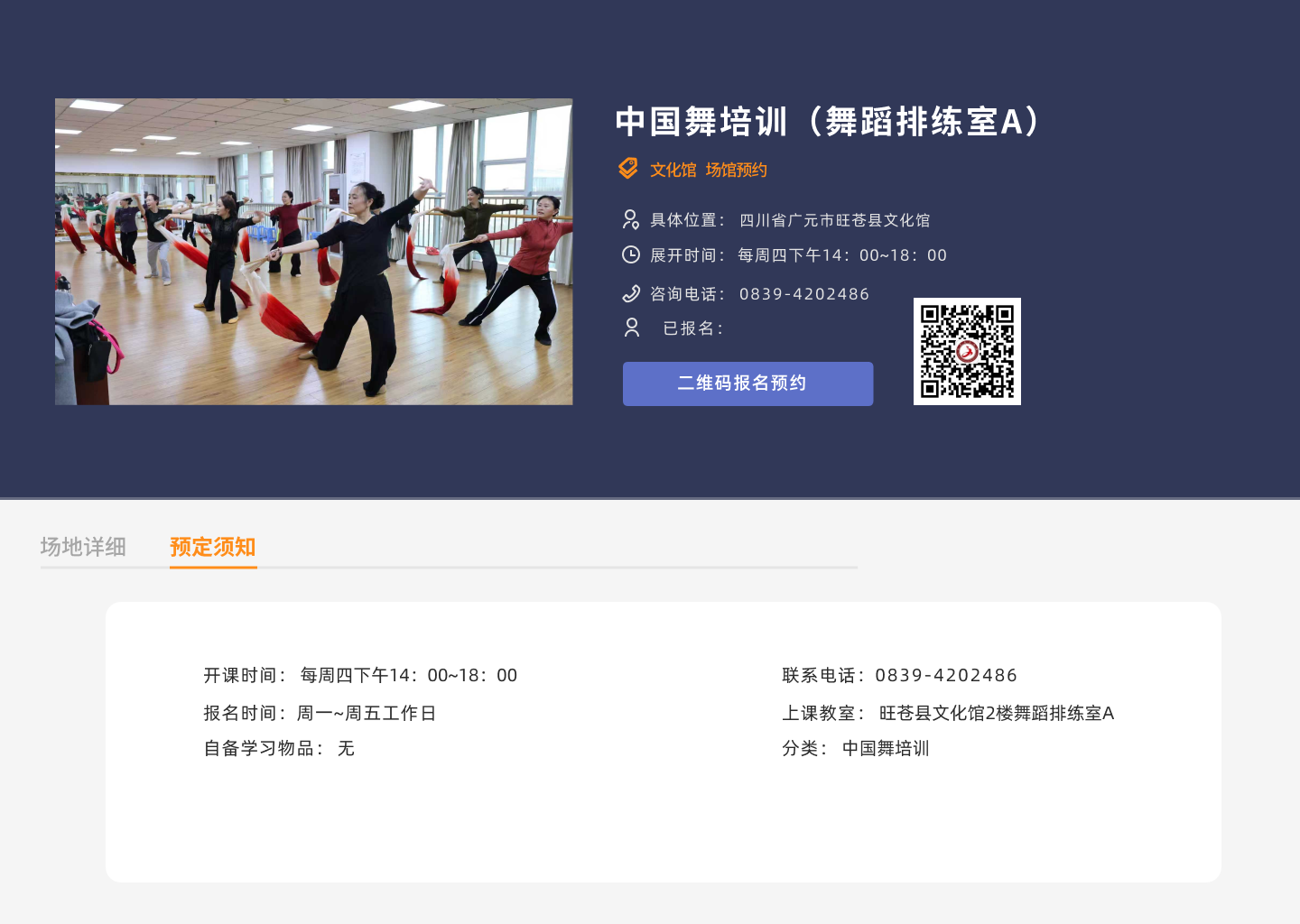 地址:四川省广元市旺苍县东河镇兴旺大道文体中心文化馆