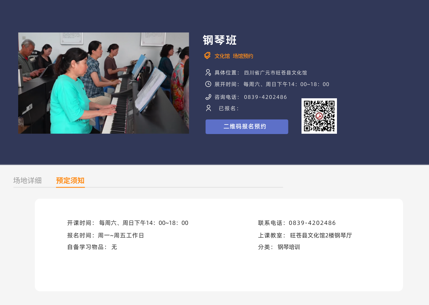 地址:四川省广元市旺苍县东河镇兴旺大道文体中心文化馆
