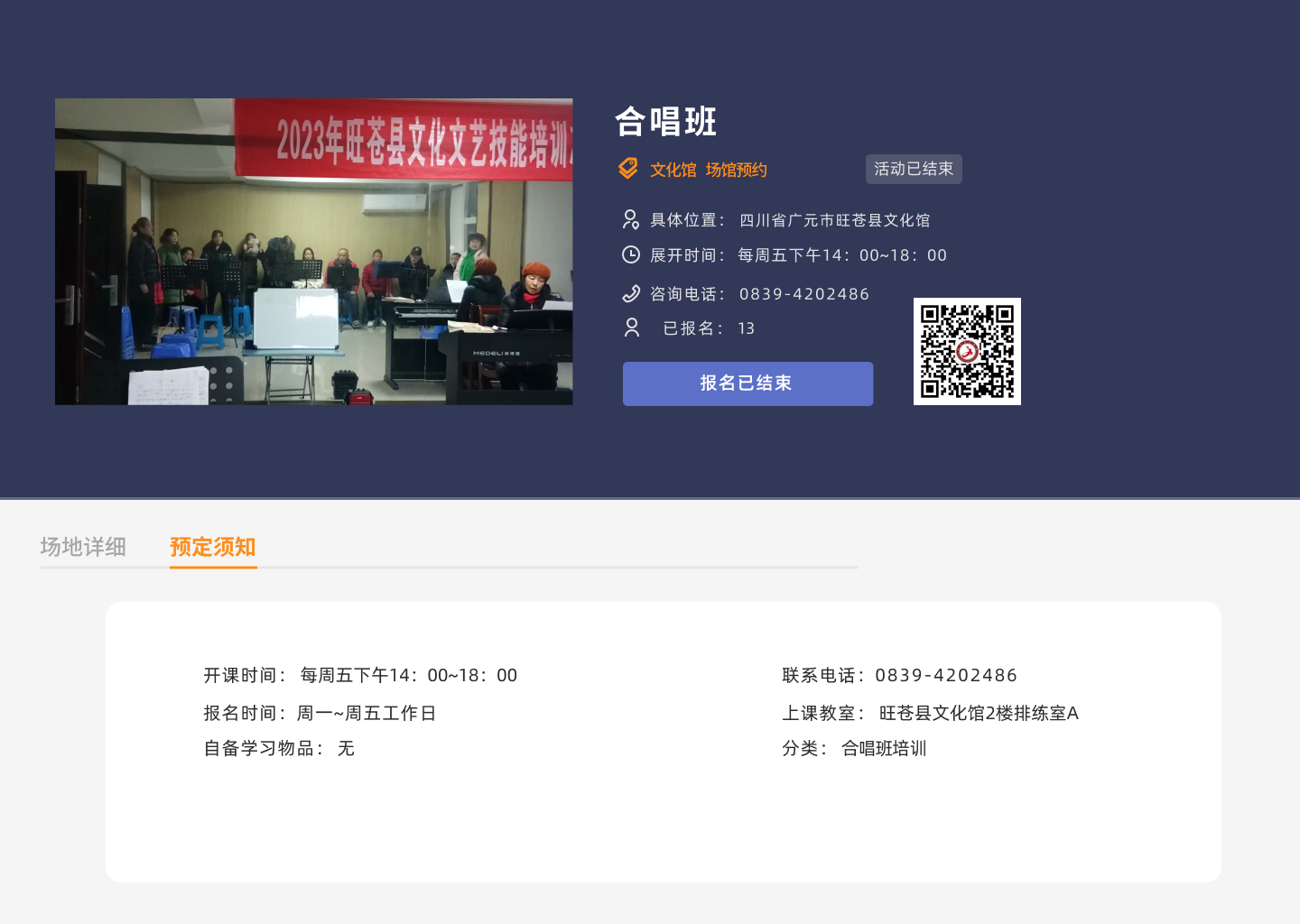 地址:四川省广元市旺苍县东河镇兴旺大道文体中心文化馆
