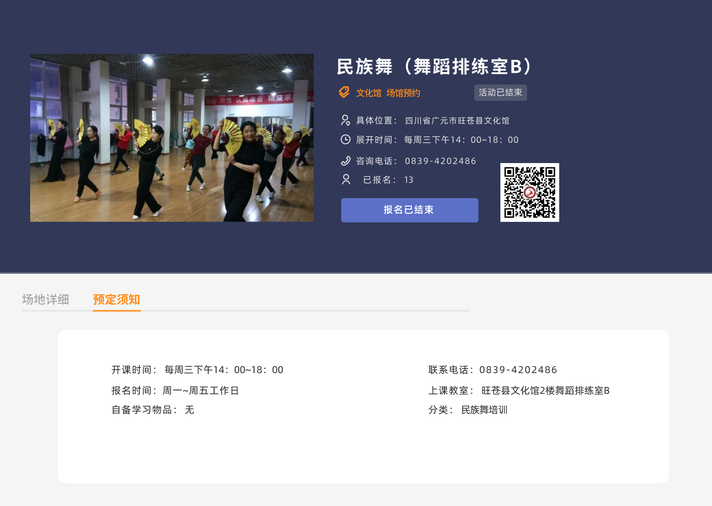 地址:四川省广元市旺苍县东河镇兴旺大道文体中心文化馆