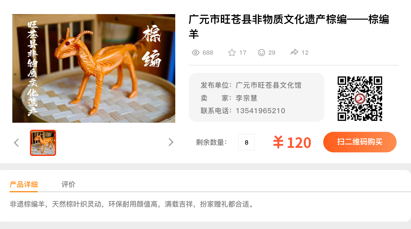 广元市旺苍县非物质文化遗产棕编--棕编羊