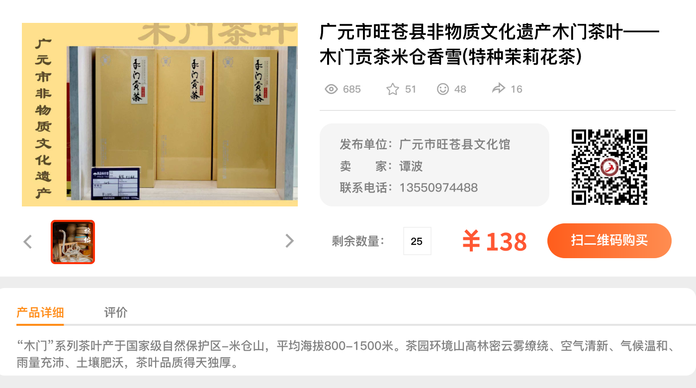 广元市旺苍县非物质文化遗产木门茶叶——木门贡茶米仓香雪(特种茉莉花茶)