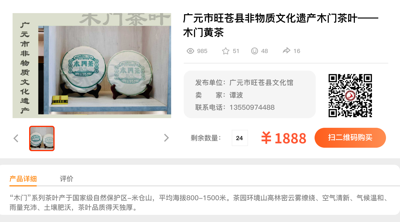 广元市旺苍县非物质文化遗产木门茶叶——木门黄茶