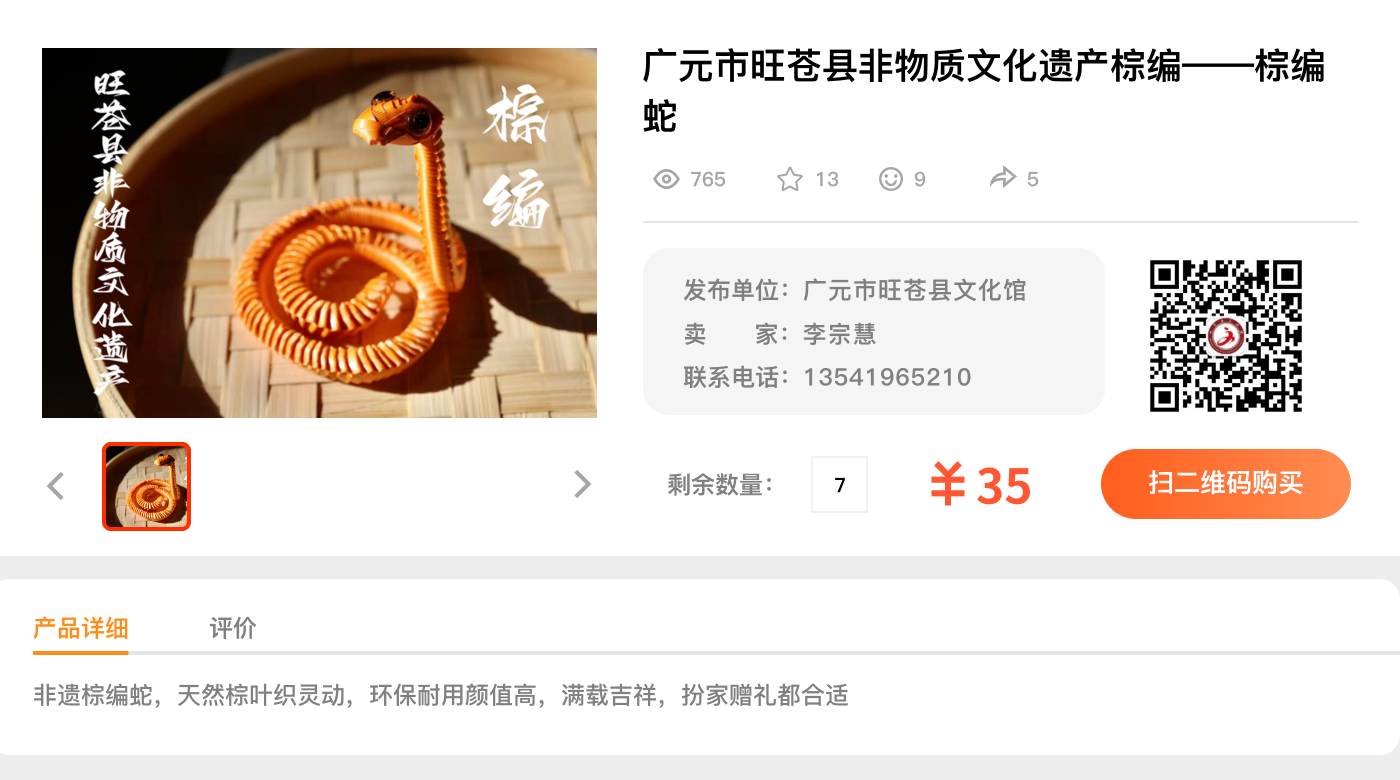 广元市旺苍县非物质文化遗产棕编--棕编蛇