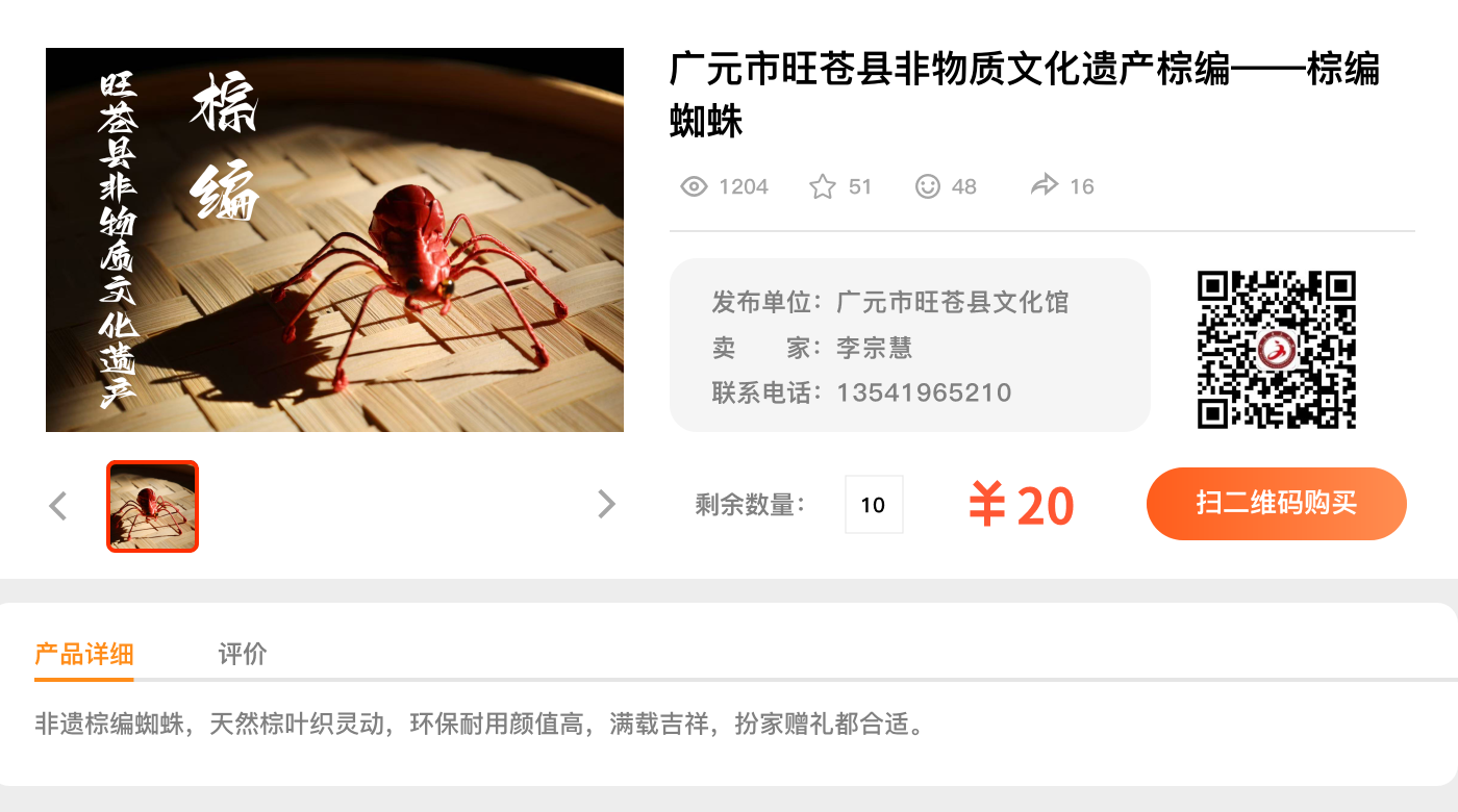 广元市旺苍县非物质文化遗产棕编--棕编蜘蛛