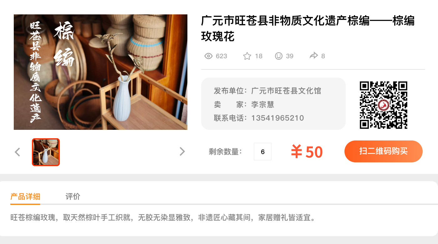 广元市旺苍县非物质文化遗产棕编--棕编玫瑰花