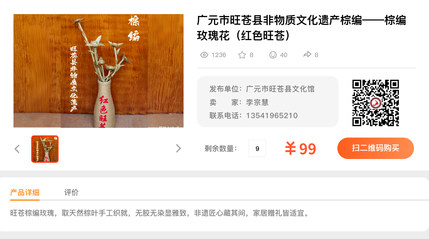 广元市旺苍县非物质文化遗产棕编--棕编玫瑰花(红色旺苍)