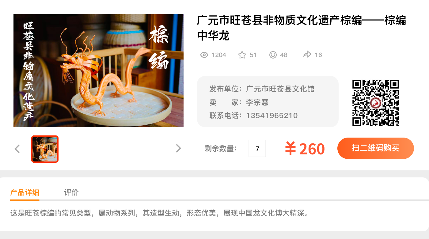 广元市旺苍县非物质文化遗产棕编--棕编中华龙