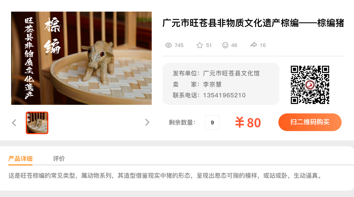 广元市旺苍县非物质文化遗产棕编--棕编猪
