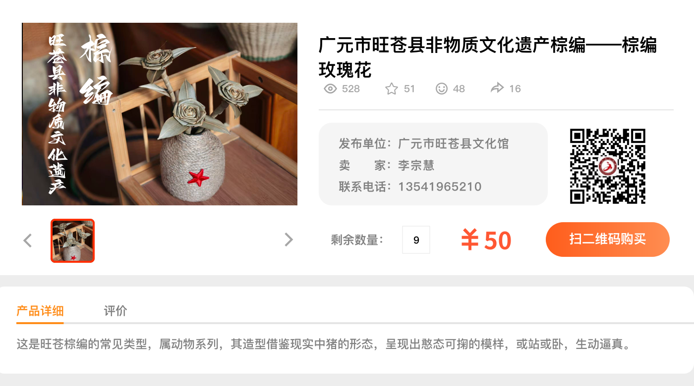 广元市旺苍县非物质文化遗产棕编--棕编玫瑰花