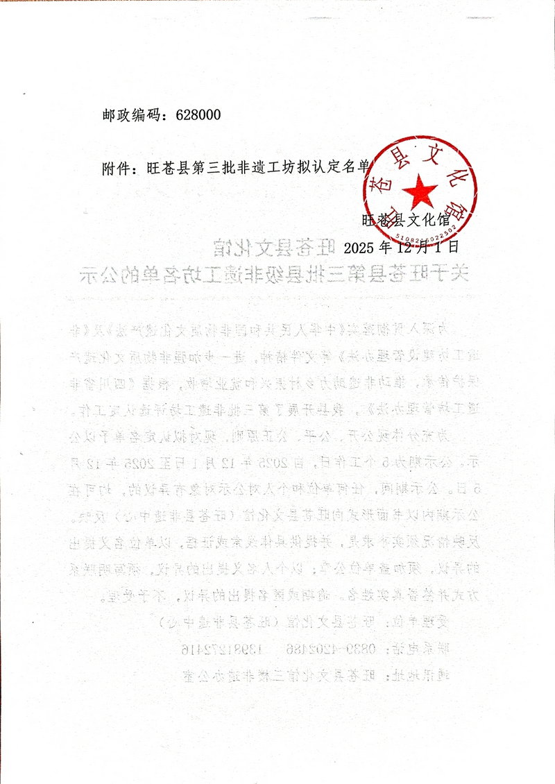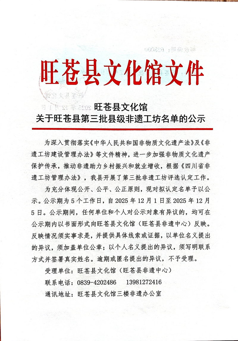 旺苍县第三批非遗工坊公示