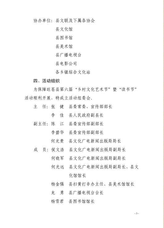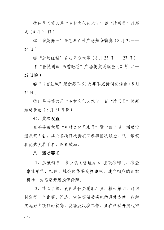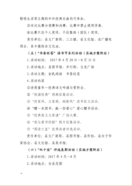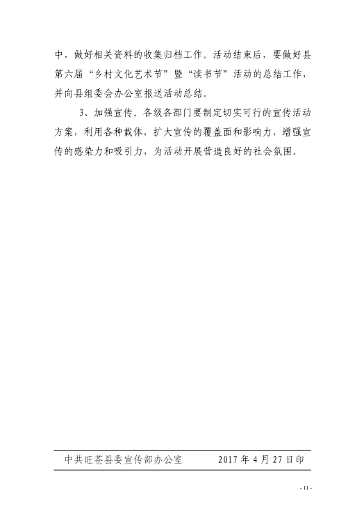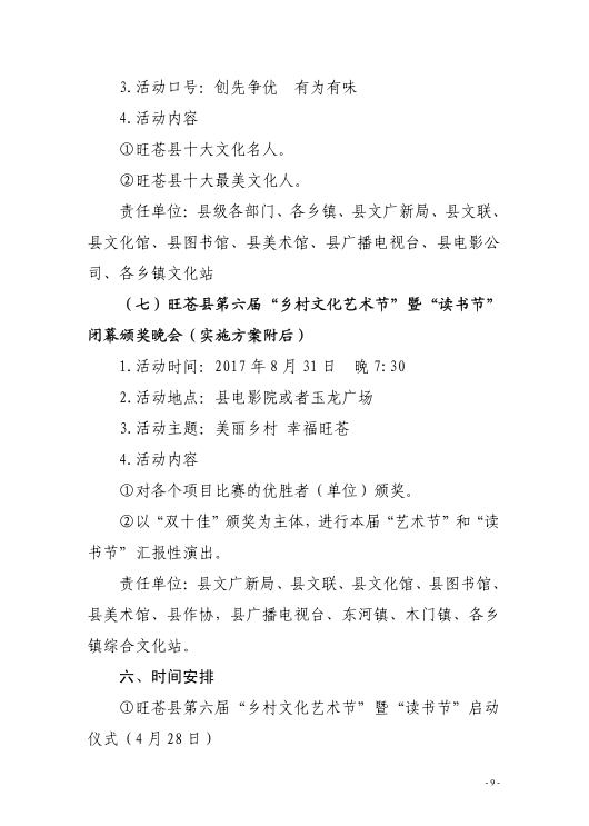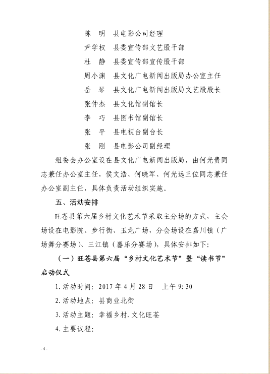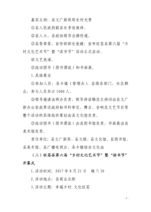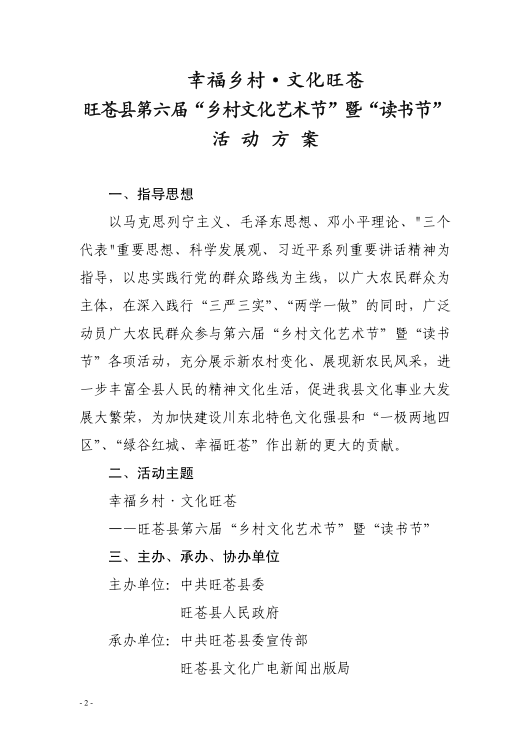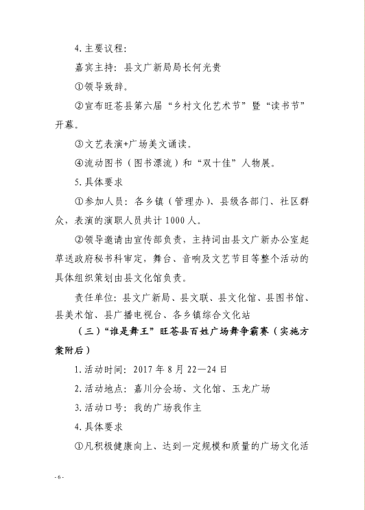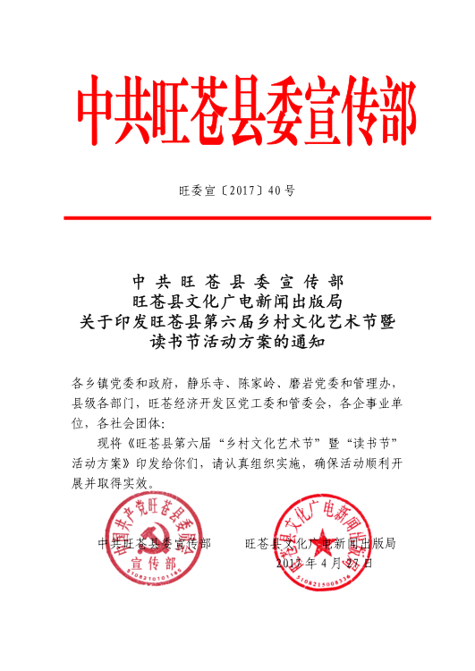 旺苍县2017年第六届乡村文化艺术节暨读书节活动方案的通知